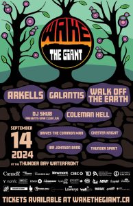 Need a breather? The Wake the Giant Wellness Tent and onsite teepee are there for you. Elders will be available for conversation, guidance, or smudging. Youth outreach counsellors are also onsite for mental health support.